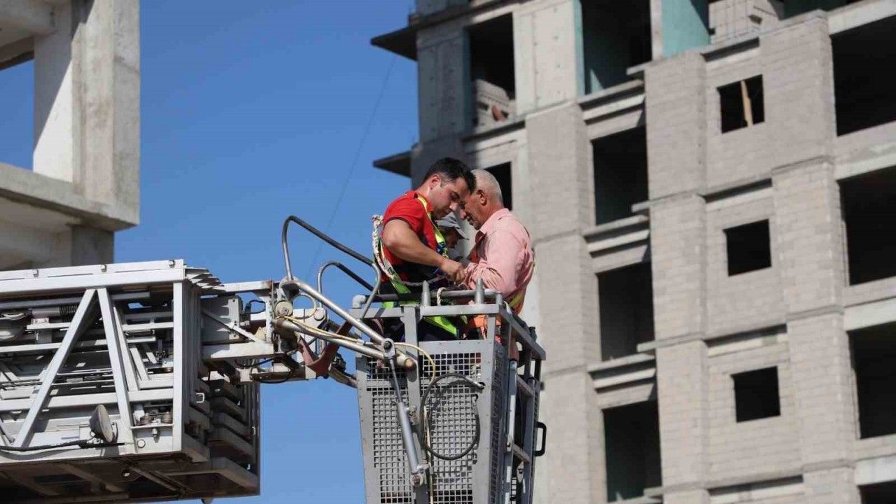 Olay, Toroslar ilçesi Hüseyin Okan Merzeci Mahallesi 97014 Sokak üzerindeki 14 katlı bina inşaatında meydana geldi. Alınan bilgiye göre, inşaatın dış cephesinde çalışan 2 işçi, iddiaya göre elektrik arızası nedeniyle iskelede mahsur kaldı. Durumu fark edenlerin ihbarı üzerine, Mersin Büyükşehir İtfaiye Dairesi Başkanlığı Yenişehir İtfaiye Grup Amirliği ve Afet Arama Kurtarma ekipleri sevk edildi. İşçiler merdiven yardımıyla mahsur kaldıkları yerden kurtarılarak güvenli alana indirildi. Yaklaşık yarım saatlik çalışmayla kurtarılan işçiler, yaşadıkları korkulu anların ardından itfaiye ekiplerine teşekkür etti.