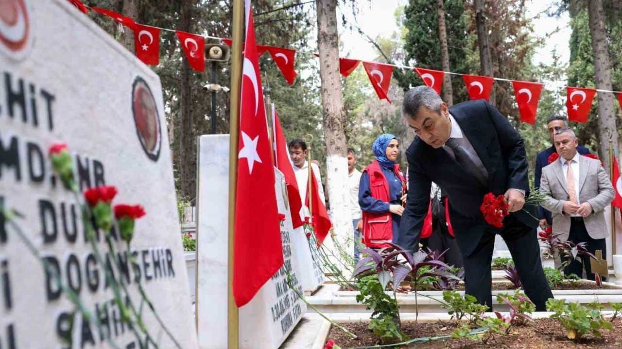 Mersin Şehir Mezarlığı’ndaki Şehitlik Anıtı önünde düzenlenen törene Vali Atilla Toros’un yanı sıra Akdeniz Bölge ve Garnizon Komutanı Tuğamiral Ali Tuna Baysal, İl Jandarma Komutanı Ercan Atasoy, Sahil Güvenlik Akdeniz Bölge Komutanı Tuğamiral Oğuz Bavbek, İl Emniyet Müdürü Kamil Karabörk, İl Milli Eğitim Müdürü Fazilet Durmuş, ilçe belediye başkanları, gaziler ve şehit aileleri katıldı. Kur’an-ı Kerim ve duaların okunmasıyla başlayan törende Vali Toros ve protokol üyeleri, şehit mezarlarını tek tek gezerek karanfil bıraktı. Burada şehit aileleriyle de yakından ilgilenen protokol üyeleri, onlarla sohbet ettiler.