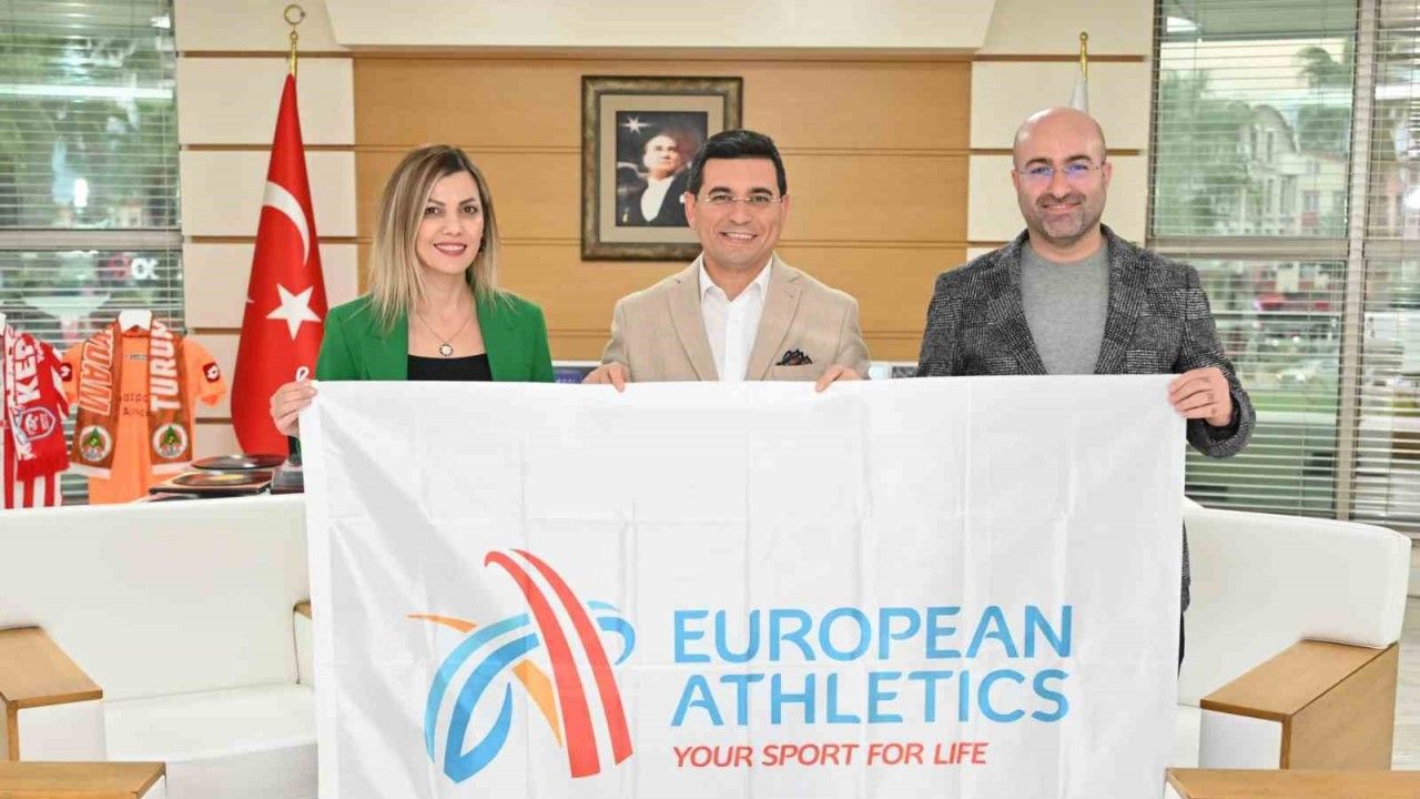 Türkiye’de ilk defa yapılacak Avrupa Atletizm Kros Şampiyonası bayrağını Antalya Kepez Belediyesi teslim aldı. Kepez Belediye Başkan Yardımcısı Sebahat Adanır, Brüksel’de teslim aldığı 2024 Avrupa Kros Şampiyonası bayrağını Başkan Hakan Tütüncü’ye teslim etti.