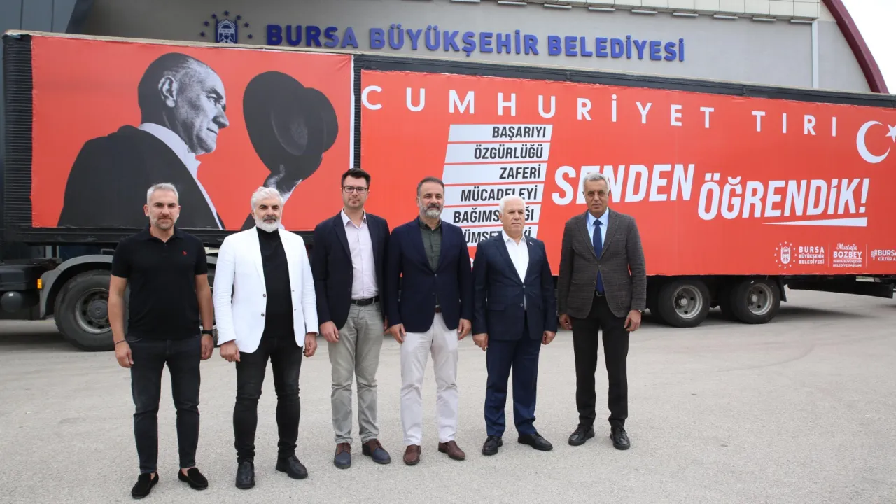 Cumhuriyet coşkusunu tüm kente yaymayı hedefleyen Bursa Büyükşehir Belediyesi, özel olarak hazırlanan ‘Cumhuriyet Tırı’ ile Gemlik, Osmangazi, İznik ve Orhangazi’de Ulu Önder Mustafa Kemal Atatürk'ün "Benim en büyük eserim" dediği Cumhuriyet'in değerlerini Bursalılarla buluşturdu.BURSA (İGFA) - Bursa Büyükşehir Belediyesi iştiraklerinden Kültür AŞ tarafından özenle hazırlanan ‘Cumhuriyet Tırı’, bu yıl 101. yıl dönümü kutlanacak olan 29 Ekim Cumhuriyet Bayramı’nın heyecanını tüm ilçelere taşıyor. Ulu Önder Mustafa Kemal Atatürk'ün "Benim en büyük eserim" dediği Cumhuriyet'in değerlerini Bursalılarla buluşturan ‘Cumhuriyet Tırı’, Gemlik, Osmangazi, İznik ve Orhangazi’de vatandaşlara büyük bir coşku yaşattı. ‘Senden Öğrendik’ temalı Cumhuriyet Sergisi’ ilçelerde büyük ilgi görürken, Bilim Teknoloji Merkezi deney düzenekleri uygulamasına katılanlar keyifli anlar yaşadı. Cumhuriyet temalı kahoot yarışması ile büyük heyecan yaşayan Bursalılar, uzman isimlerin yer aldığı söyleşilerde Cumhuriyet’in değerlerini dinleme fırsatı buldu. Bursa Büyükşehir Belediyesi Kent Orkestrası’nın verdiği konserlerde ise vatandaşlar eğlenceli bir gün geçirdi.