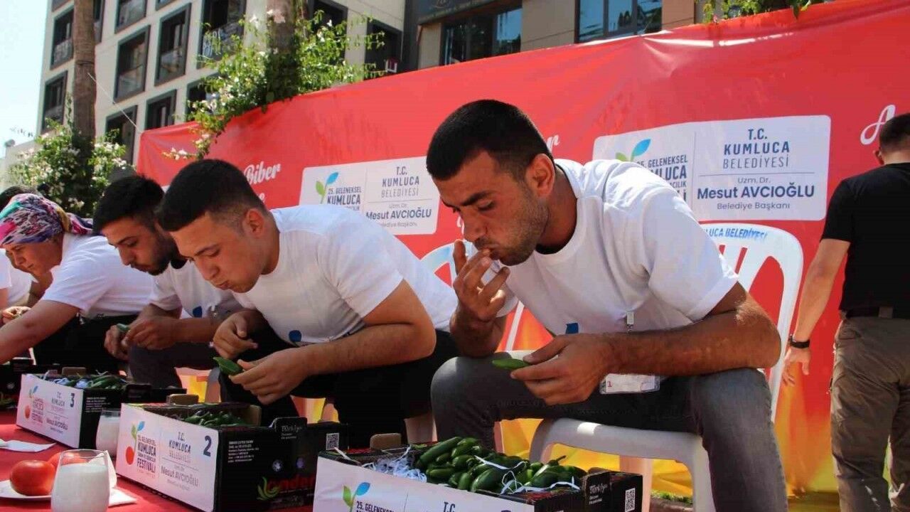 Kumluca Belediyesi tarafından bu yıl 25’incisi düzenlenen Tarım ve Seracılık çerçevesinde düzenlenen acı biber yeme yarışmasında 323 gram acı biberi yiyen Ahmet Gürhan birinci oldu. 20 yarışmacının katıldığı 25. Tarım ve Seracılık Festivali çerçevesinde düzenlenen acı biber yeme yarışmasında 3 dakikada 323 gram acı biberi yiyen Ahmet Gürhan 7 Bin 500 liranın sahibi oldu.