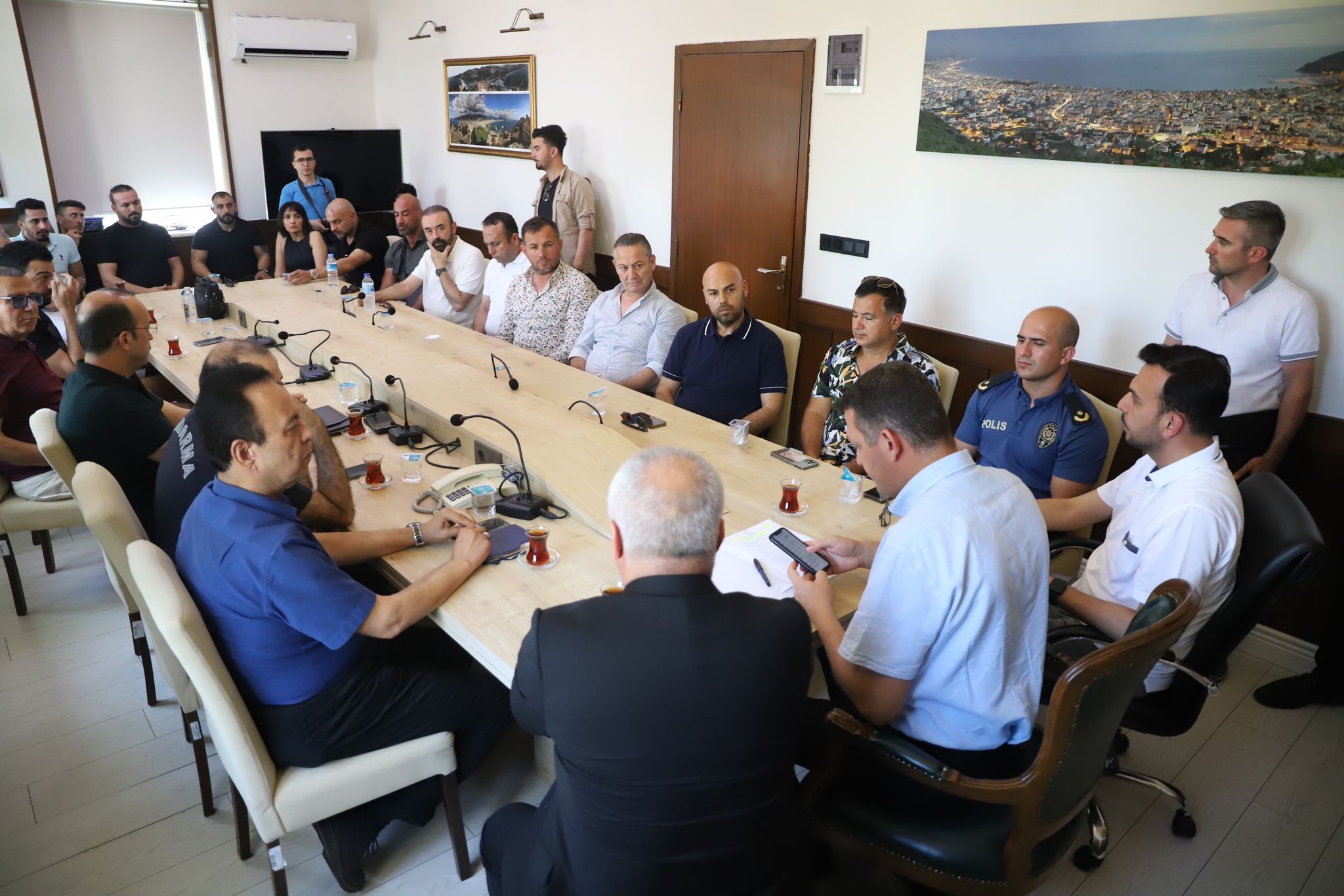 Alanya Kaymakamı Dr. Fatih Ürkmezer başkanlığında eğlence mekanlarının gece kapanış saatleriyle alakalı toplantı Kaymakamlık binasında gerçekleşti. Toplantıya, Alanya Belediye Başkan Yardımcısı Ali Yenialp, AK Parti Alanya İlçe Başkanı Y. Mimar Mustafa Toklu, İlçe Emniyet Müdürü Murat Kenan Patat, İlçe Jandarma Komutanı Yarb. Burak Mindivanlı, ALTSO Başkanı Eray Erdem ve eğlence sektörü temsilcileri katıldı.