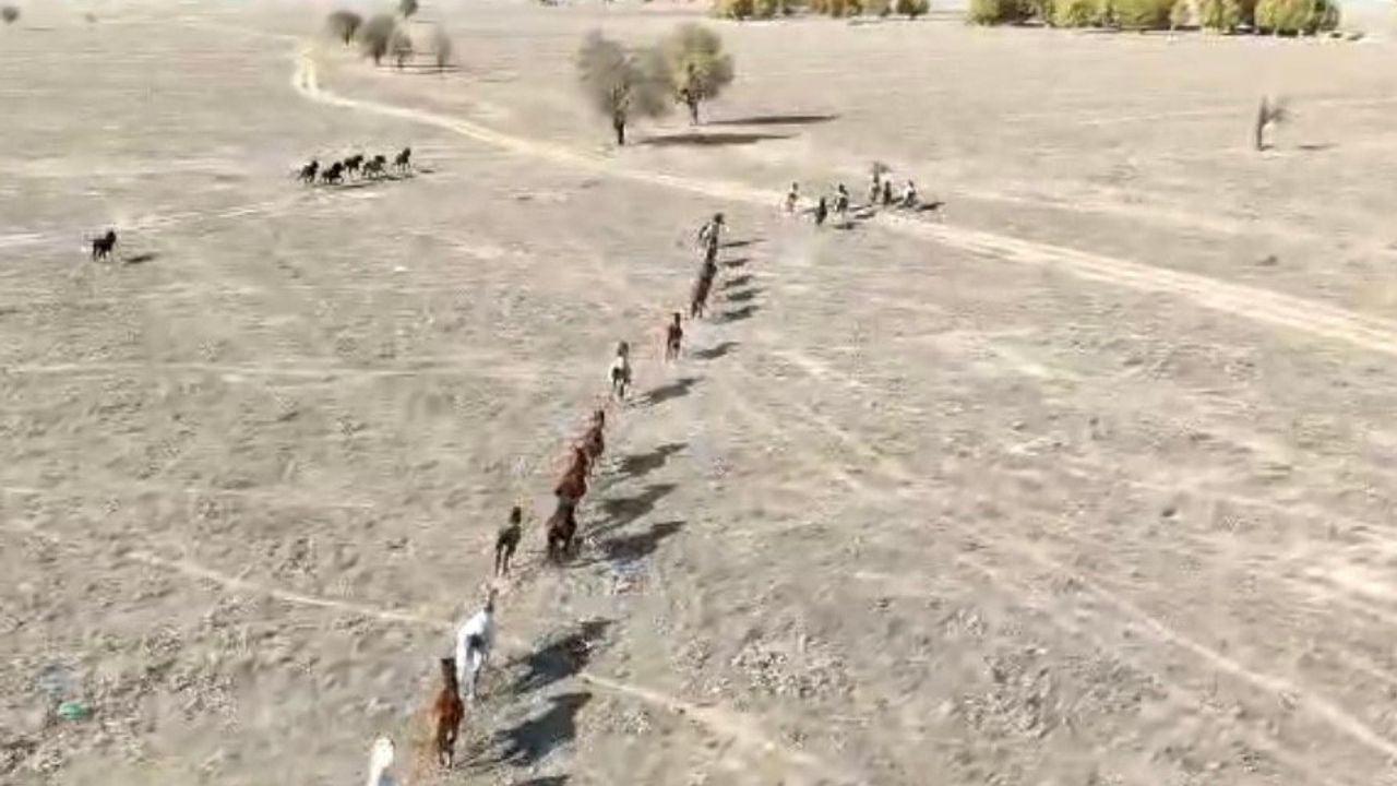 Toroslar’ın, Akdeniz ile İç Anadolu’yu bıçak gibi kestiği bölgede yer alan ve belgesellere konu olan Eynif Ovası’nda yavruları ile doğaya ayrı bir güzellik katan atları izlemek üzere her yıl dünyanın dört bir yanından ziyaretçiler geliyor. Yılkı atları ise ovada yaklaşık 50 sürü halinde yaşıyor. Gruplar halinde yavruları ile aile halinde yaşayan rengarenk yılkı atlarının vahşi yaşamları dron ile görüntülendi.