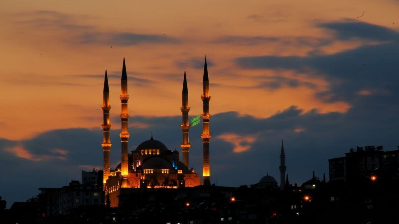 Kahramanmaraş’ta Abdulhamid Han Cami gün batımında görsel şölen oluşturdu.