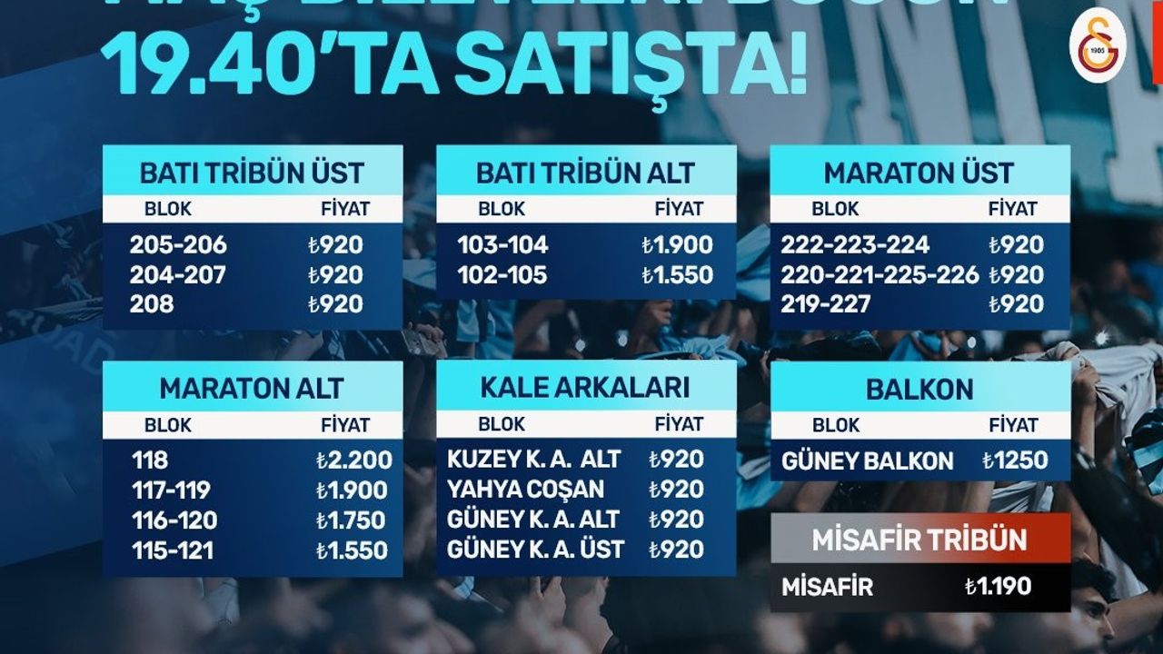 Mavi-lacivertli kulüpten yapılan açıklamada, “Galatasaray maç biletleri satışta” denildi.