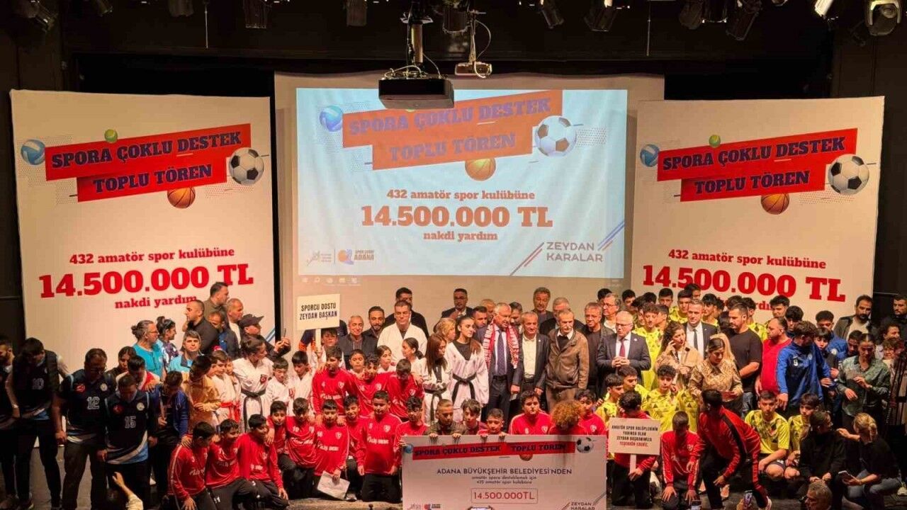Adana Büyükşehir Belediyesi, 432 amatör spor kulübüne 14 milyon 500 bin lira destekte bulundu.