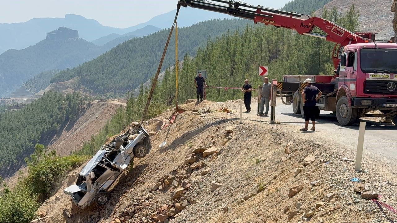 Kazanın olduğu bölgede aracın uçurumdan çıkarılması için çalışma yapıldı. Vinç yardımı ile uçurma gönderilen halatlar araca bağlandı. Hurdaya dönen otomobil yaklaşık 2 saatlik çalışmayla yaklaşık 70 metrelik uçurumdan çıkarıldı.