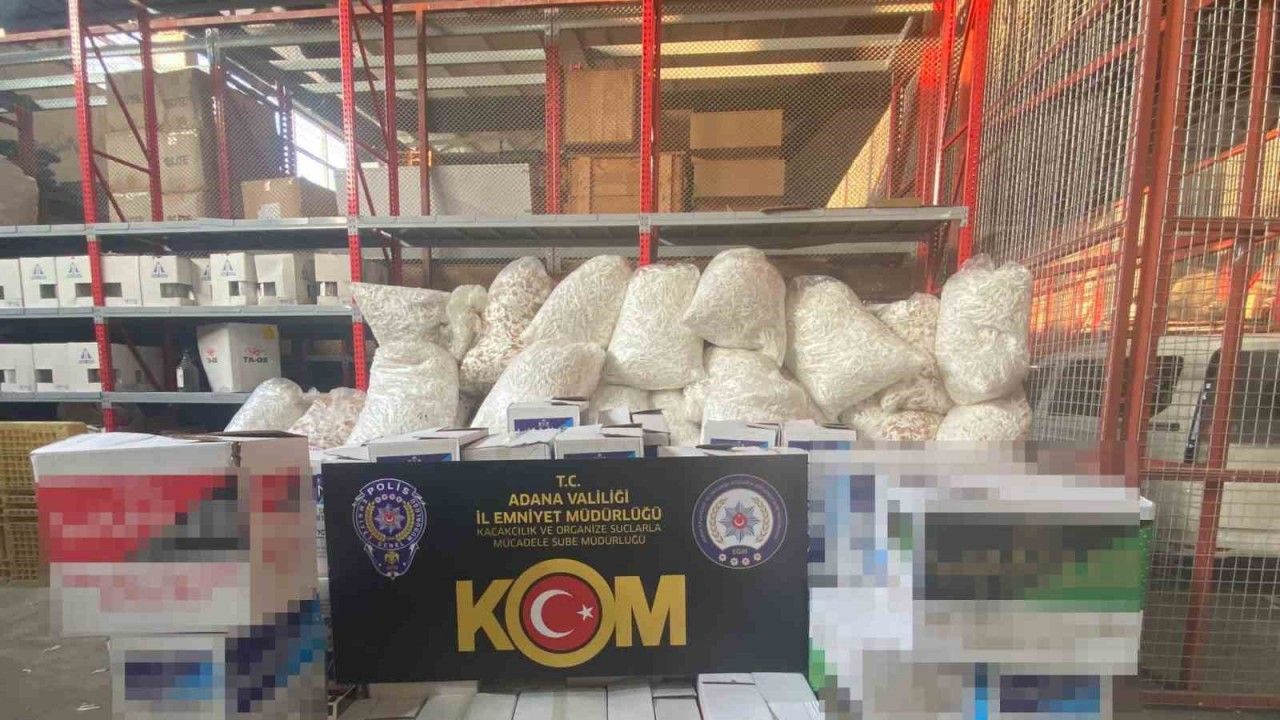Adana Emniyet Müdürlüğü Kaçakçılık ve Organize Suçlarla Mücadele Şube Müdürlüğü ekipleri, bir depoda gümrük kaçağı makaron olduğu yönünde ihbar aldı. Bunun üzerine ekipler Seyhan ilçesi Şakirpaşa Mahallesi’ndeki depoya baskın düzenledi. Baskında piyasa değeri 5 milyon 916 bin TL olan, 19 milyon 720 bin gümrük kaçağı makaron, 1 milyon 523 bin gümrük kaçağı doldurulmuş sigara ve 62 bin 500 adet TPDK bandrolü ele geçirildi.