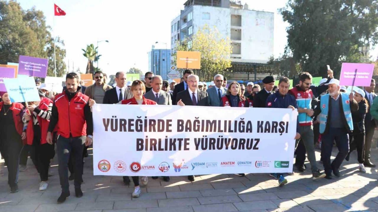 Adana’da uyuşturucu bağımlılığına karşı mücadele topyekun sürüyor. Merkez Yüreğir ilçesinde Adana Valiliği, İl Emniyet Müdürlüğü, İl Jandarma Komutanlığı İl Milli Eğitim Müdürlüğü, Sağlık Müdürlüğü, Gençlik ve Spor İl Müdürlüğü, Yüreğir Belediyesi, Adana Müftülüğü ve birçok STK, Yüreğir’de "Bağımlılığa Karşı Birlikte Yürüyoruz" sloganıyla yürüyüş düzenledi.