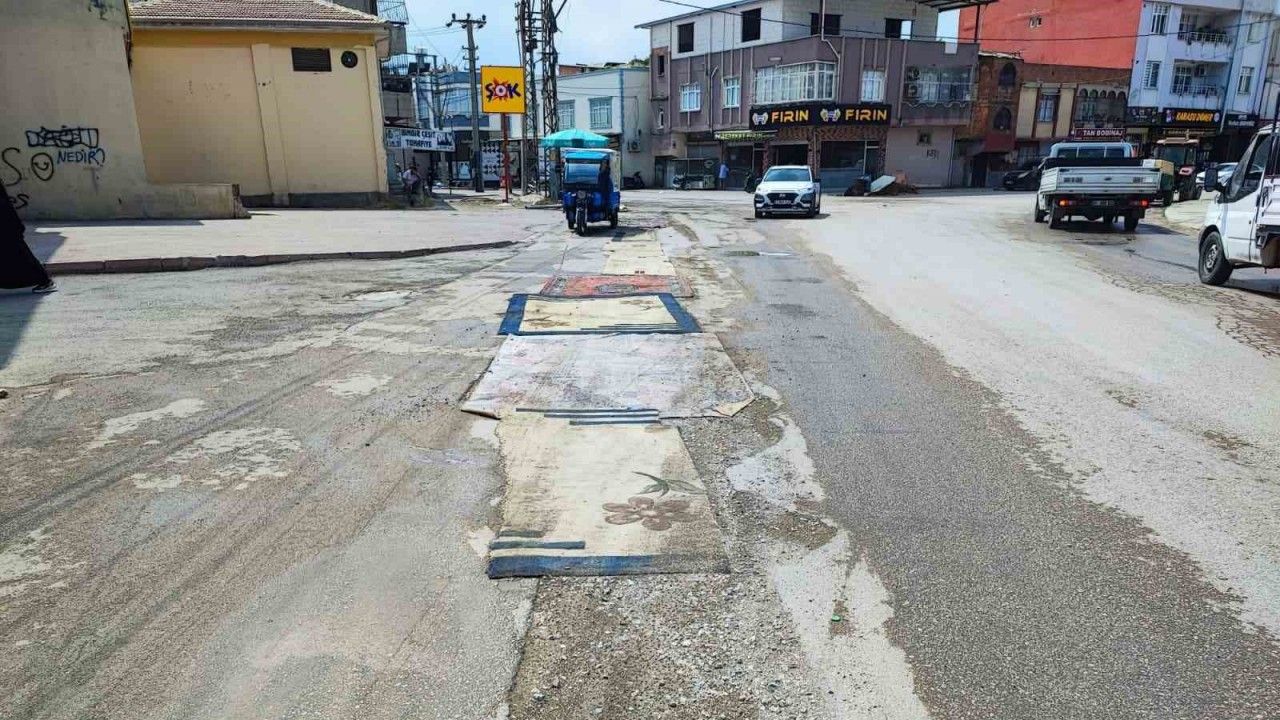 Adana’da kazılan yol, belediye tarafından bir türlü asfaltlanmayınca esnaf tozdan bıktı. Evlerinden getirdikleri eski halıları sererek kendince çözüm buldu.