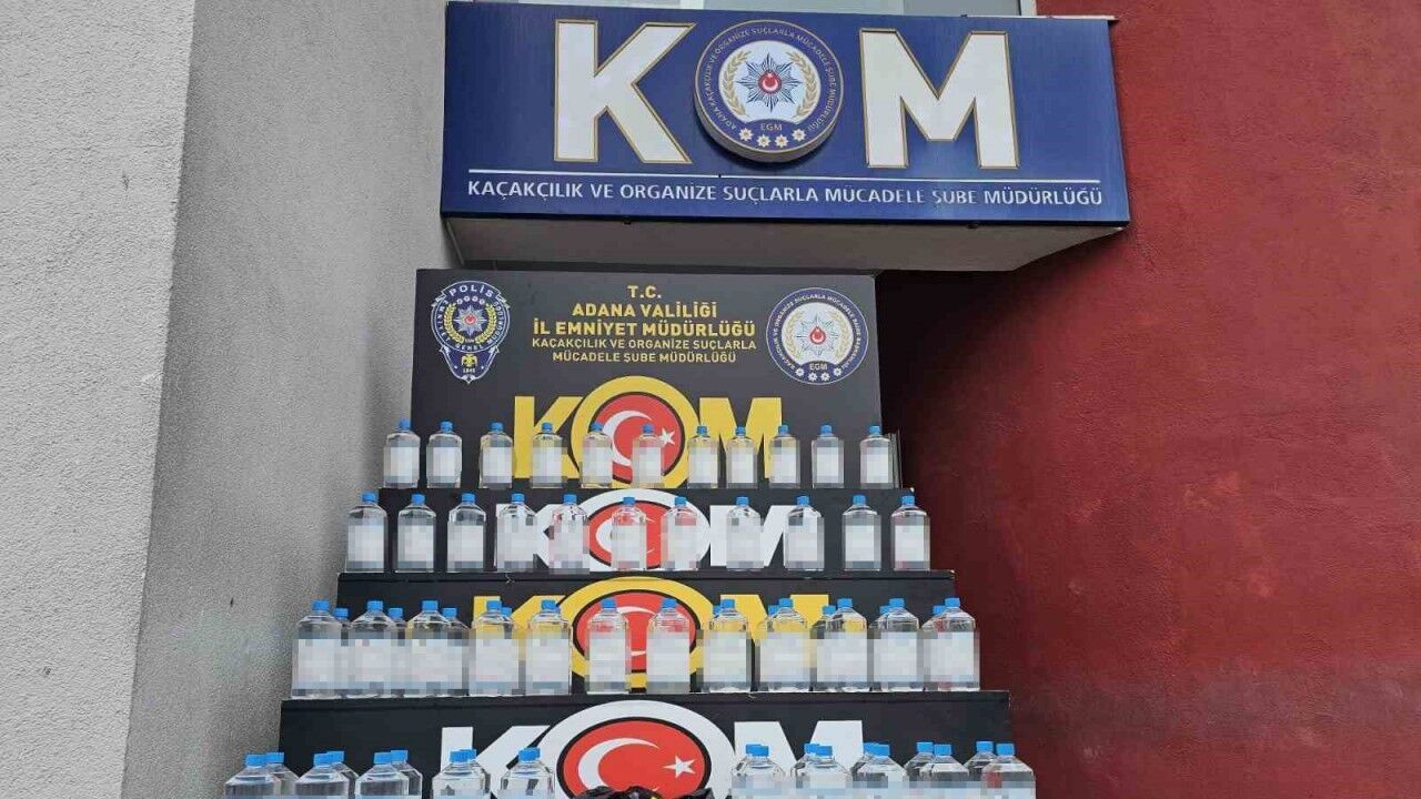 Adana’da kaçak 30 şişe içki, sahte içki yapımında kullanılan 445 litre etil alkol ile 1165 aroma kiti ele geçirildi, 5 şüpheli gözaltına alındı.