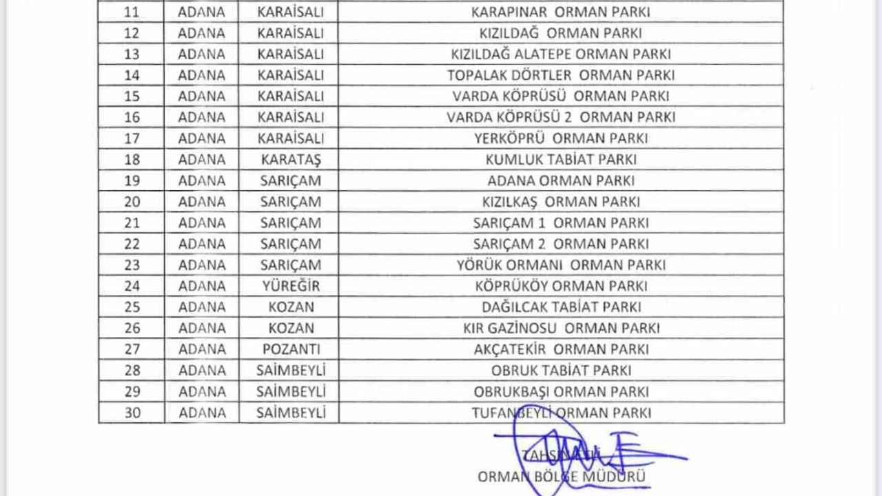 Adana Valiliği açıklamanın ardından yasak bünyesinde yer almayan orman, mesire ve piknik alanlarıyla ilgili de bilgi verdi.