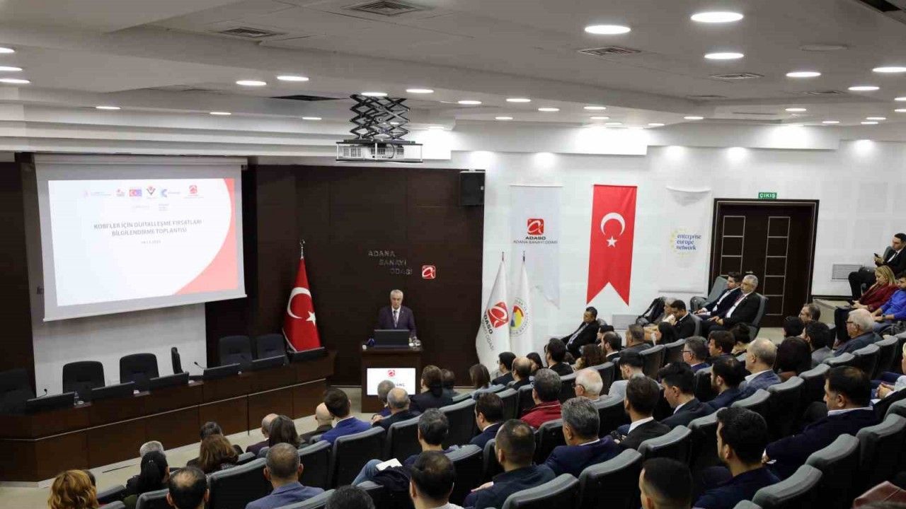 KOBİ’ler için Dijitalleşme Fırsatları ADASO tarafından düzenlenen etkinlikte Adanalı sanayicilere anlatıldı. Sanayi ve Teknoloji Bakanlığı, TÜBİTAK ve KOSGEB’in üst düzey temsilcileri sanayicilerle bir araya gelerek ulusal ve uluslararası destek mekanizmalarını anlattı.