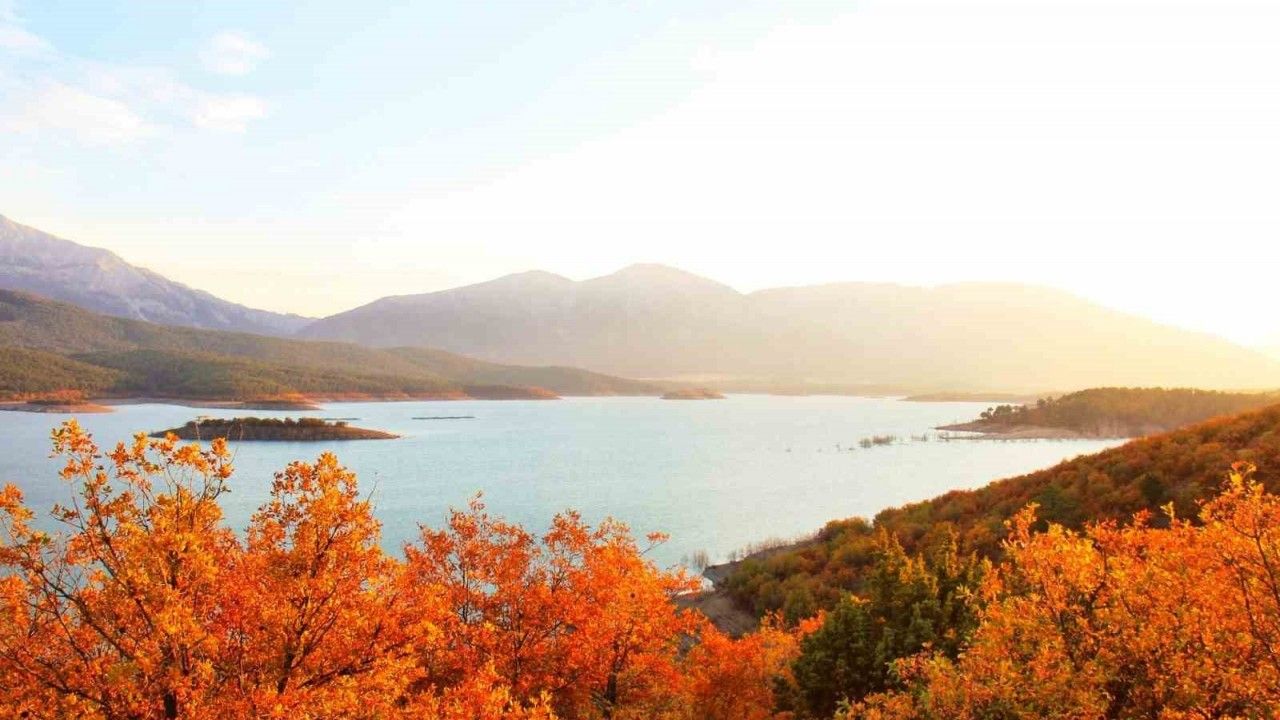 Kahramanmaraş’ın Göksun ilçeasinde Adatepe Barajı etrafı sonbahar ile birlikte renk cümbüşüne dönüştü.