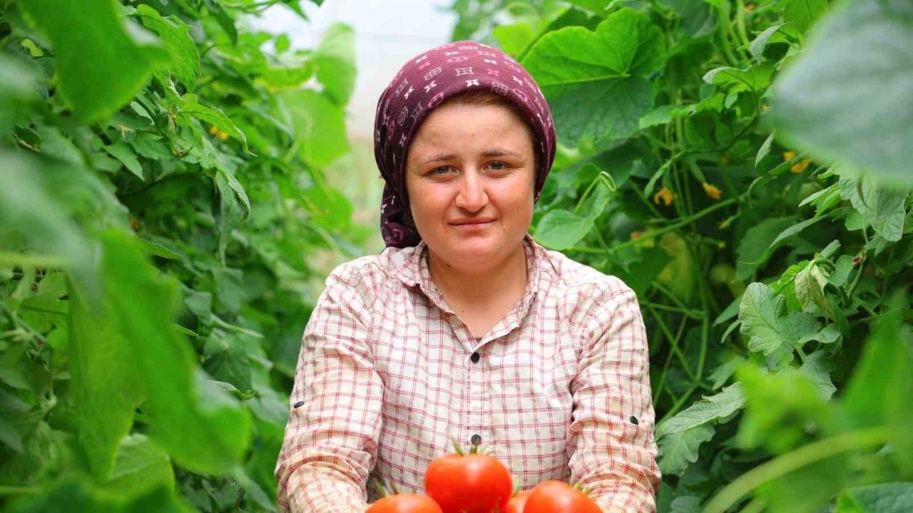 Kahramanmaraş’ta Kadıoğlu Çiftliği Mahallesi’nde dört mevsim örtü altında yerli domates üretimi yapılıyor.
