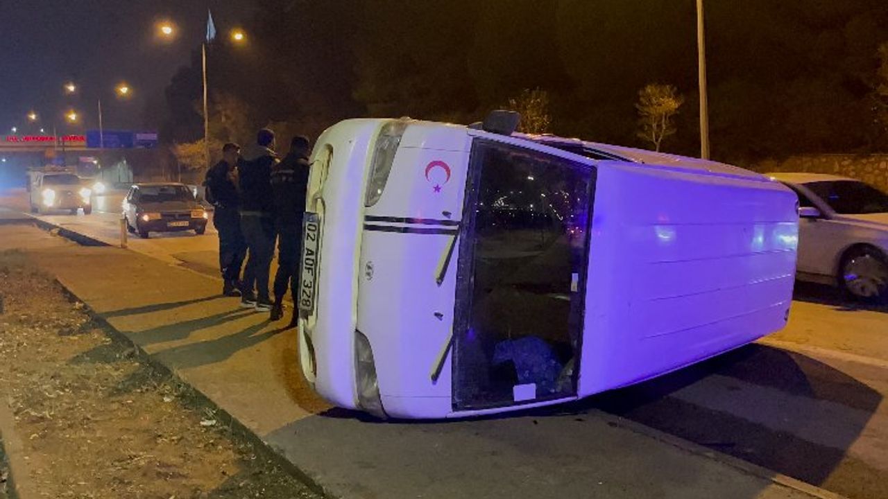 Alınan bilgiye göre, Atatürk Bulvarında sürücü ismi öğrenilmeyen 02 ADD 328 plakalı minibüs sürücüsü direksiyon hakimiyetini kaybederek, takla attı.