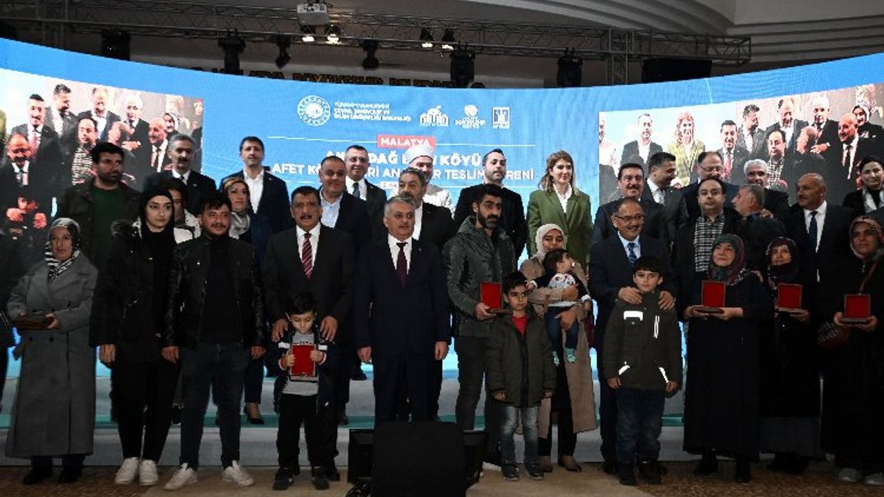 Çevre, Şehircilik ve İklim Değişikliği Bakanı Mehmet Özhaseki’nin katılımlarıyla Malatya Büyükşehir Belediyesi Nikah Sarayında Afet Köy Evleri Anahtar Teslim Töreni düzenlendi.MALATYA (İGFA) - Malatya'eda Afet Köy Evleri'nin anahtar teslim töreni Büyükşehir Belediyesi Nikâh Sarayında gerçekleştirildi.