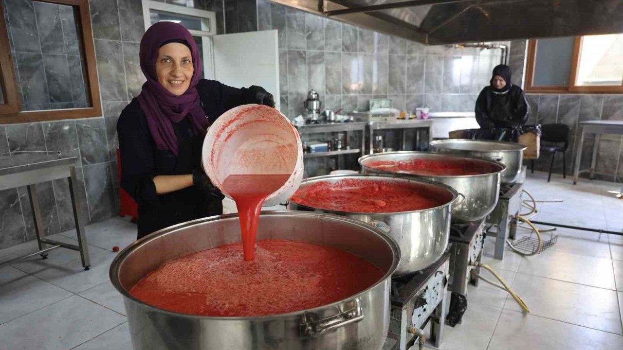 Çalışmaktan dolayı mutlu olduğunu ve aile ekonomisine katkı sağladığını ifade eden Hayriye Çubuk, "Burada domates ve biber salçası, kömbe, kurabiye ve her türlü şey çıkıyor. Burada üretim yapıyoruz. Bugün domates salçası var. Önce domatesleri yıkıyoruz sonra makineden geçiriyoruz. Süzdükten sonra tencerelere koyuyoruz. Ben 3,5 buçuk aydan beri buradayım. Burada olmaktan gayet memnunum ve hem eşime hem de aileme destek oluyorum. Burada mutluyum, arkadaşlarla gayet iyi vakit geçiriyoruz" ifadelerini kullandı.