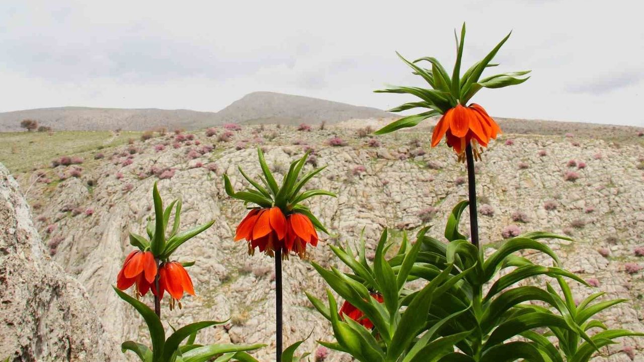 Kahramanmaraş'ın Afşin ilçesinde baharın gelişiyle birlikte ters laleler çiçek açtı. Binboğa Dağları eteklerinde, kayalık alanların arasından çıkan bu nadide çiçekler doğaseverlere görsel bir şölen sunarken, yetkililerden önemli bir uyarı da geldi.