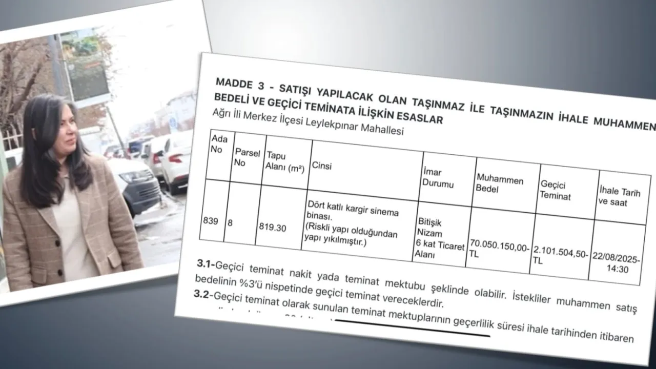 Ağrı Belediye Başkanı Hazal Aras’ın onayıyla, imar planında “6 kat ticaret alanı” olarak tanımlanan arsanın muhammen bedeli 70 milyon 50 bin TL, geçici teminatı ise 2 milyon 101 bin TL olarak belirlendi. 22 Ağustos 2025’te yapılacağı duyurulan ihale ilanı sonrasında bu karar, kentte büyük tartışmaya sebep oldu.