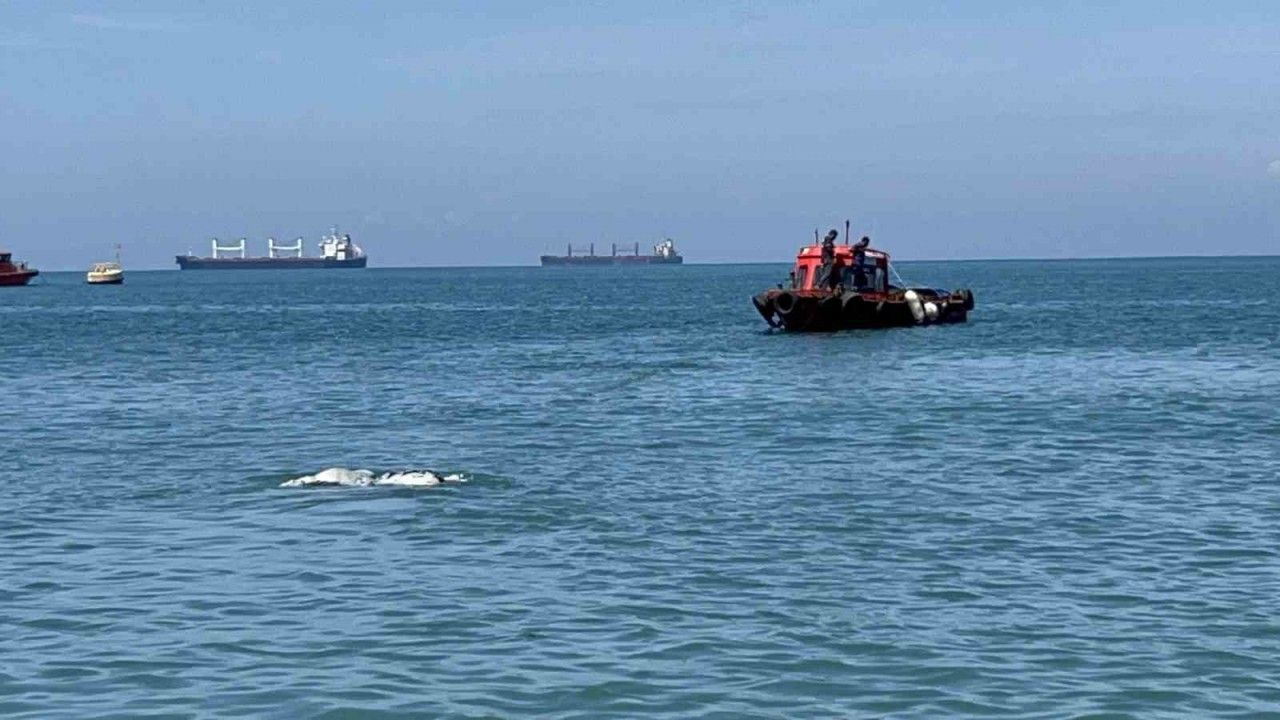Hatay’da denize düşerek telef olan ve kıyıya vuran angus, ekipler tarafından kıyıdan kaldırıldı.