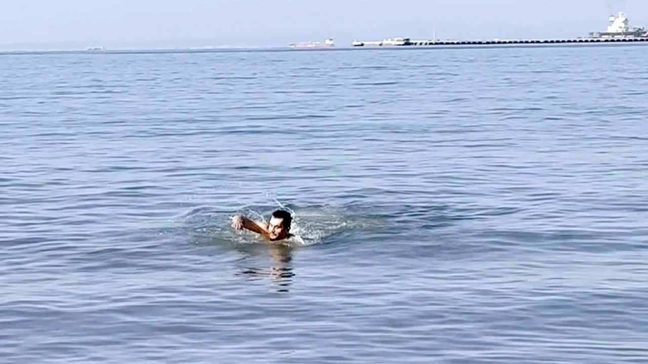 Hatay’da son 15 gündür yağışlı hava etkisini zaman zaman hissettiriyor. Ocak ayı itibarıyla hava sıcaklığı da 10 derece civarında seyrediyor. Yaz aylarında vatandaşların akınına uğrayan Hatay sahilleri ise havanın soğumasıyla boş kaldı. Tatil için Karabük’ten Payas ilçesine gelen İbrahim Yücel isimli vatandaş da günler sonra açan güneşi fırsat bilerek soluğu denizde aldı. Soğuk havaya aldırmadan tek başına denizde yüzen Yücel’in bu anları dikkat çekti. Ocak ayında denizde yüzen vatandaş, sosyal medyada da ilgi gördü.