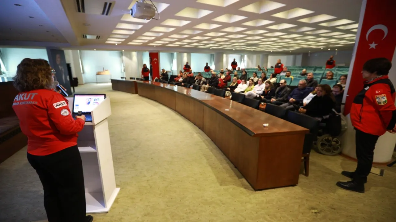 AKUT İzmir Ekibi ve AKUT Selçuk Ekibi tarafından “Farkındalık En Güçlü Önlemdir” sloganı ile Efes Selçuk’ta yaşayan engelli bireyler ve ailelerine yönelik “Acil Durum ve Doğal Afet Semineri” düzenlendi. Prof. Dr. Ahmet Taner Kışlalı Toplantı Salonu’nda düzenlenen seminerde deprem öncesinde alınması gereken önlemler, deprem anı ve sonrasında yapılması gerekenler hakkında bilgi verildi.İZMİR (İGFA) - Seminerde yaptığı konuşmada AKUT Selçuk Ekibinin 2022 yılında Efes Selçuk’ta faaliyetlerine başladığını hatırlatan AKUT Selçuk Ekibinden Alim Ateş, ekibe verdiği desteklerden dolayı Efes Selçuk Belediyesi’ne ve Belediye Başkanı Filiz Ceritoğlu Sengel’e teşekkür etti.