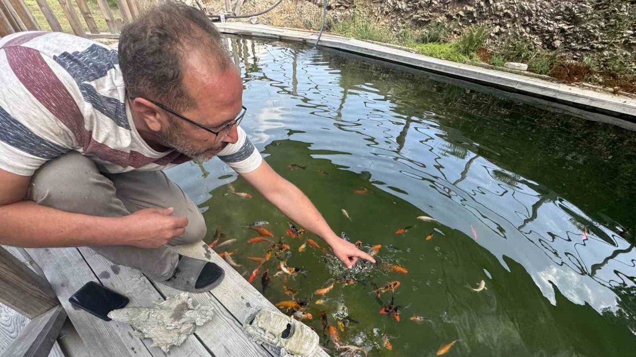 Antalya’nın İbradı ilçesi Ürünlü mahallesinde oturan Selami Bozkurt, çocukluğundaki akvaryum sevgisini yüzme havuzuna taşıdı. Bahçesine kurduğu 10x4 ebadındaki havuza bıraktığı 150 akvaryum balığına gözü gibi bakan Bozkurt, balıkları kendi elleriyle besliyor.