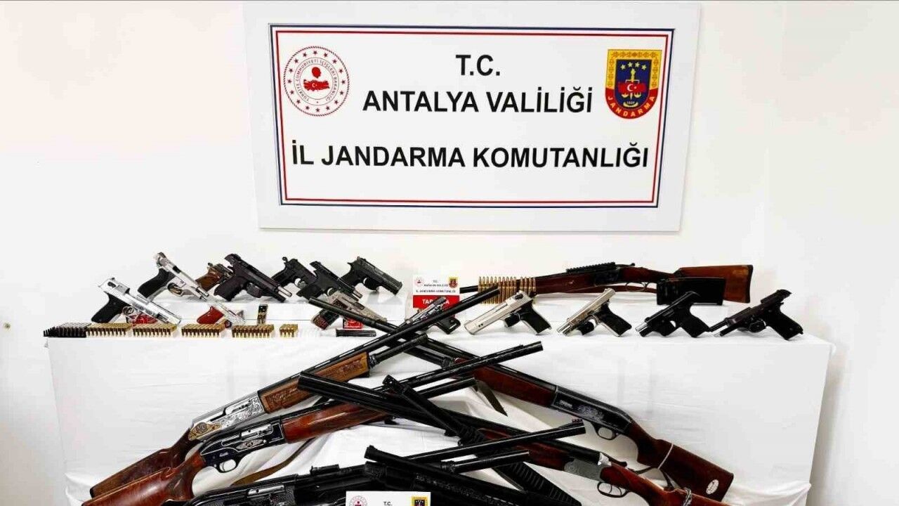 Antalya’nın Alanya ilçesinde jandarma ekipleri tarafından 11 ayrı adrese eş zamanlı gerçekleşen operasyonda çok sayıda tabanca ve tüfek ele geçirildi.