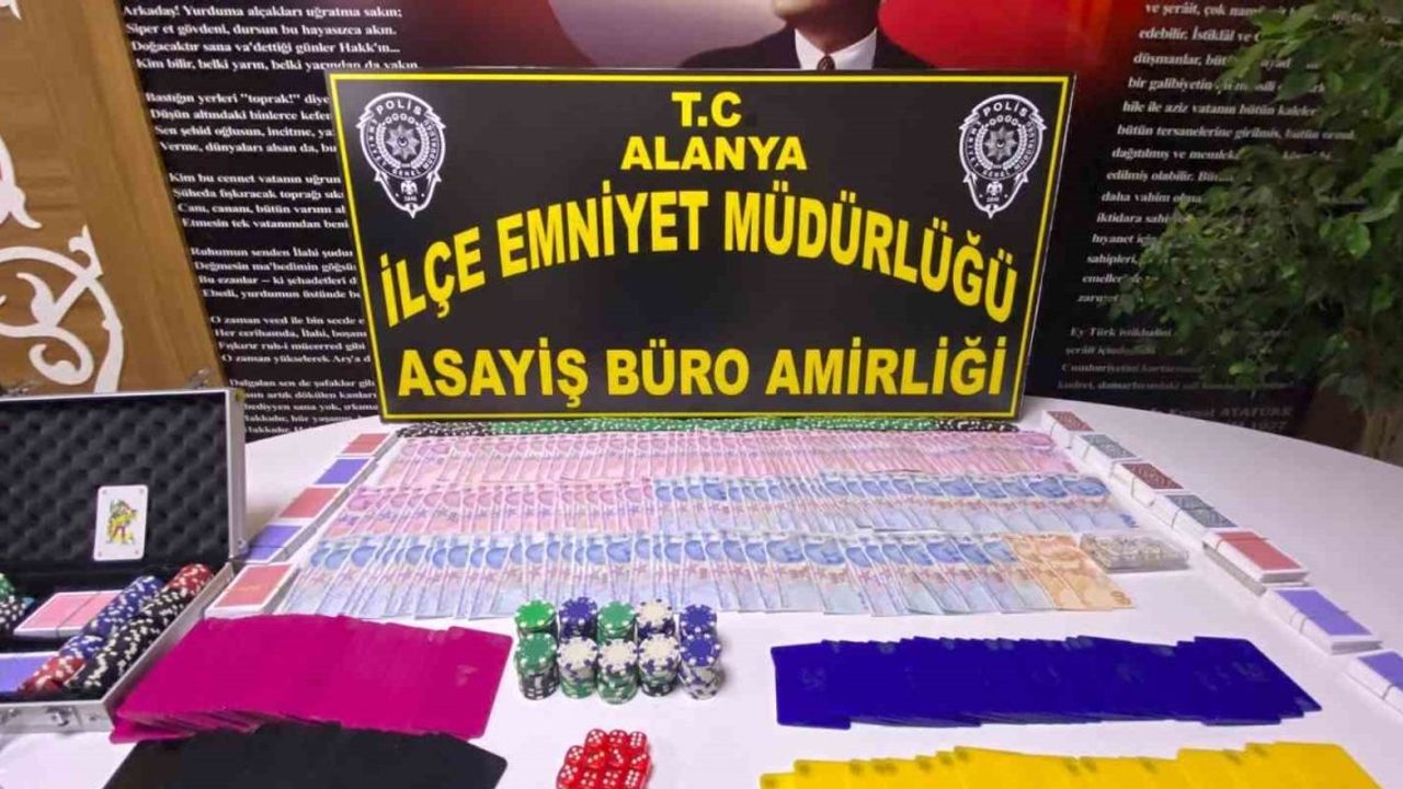 Alanya İlçe Emniyet Müdürlüğüne bağlı ekipler, kooperatif faaliyeti yürüten bir iş yerinde kumar oynandığı bilgisi üzerine harekete geçti. İş yerine düzenlenen operasyonda; masa üstlerinde çok sayıda poker pulu, iskambil ile poker kağıdı ve para olduğu belirlendi. Kumar oynadığı tespit edilen 8 kişi hakkında işlem yapılırken, iş yerinde bulunan 44 şahsın Genel Bilgi Toplama Sistemi (GBT) üzerinden sorgulaması yapıldı. Yapılan sorgu neticesinde 1 şahsın silahla tehdit suçundan aranma kaydı olduğu anlaşıldı. İş yeri sorumlusu olduğu belirlenen Y.Ş.B. ve N.F. hakkında "kumar oynanması için yer ve imkan sağlama" suçundan adli işlem yapılarak iş yeri mühürlendi.
