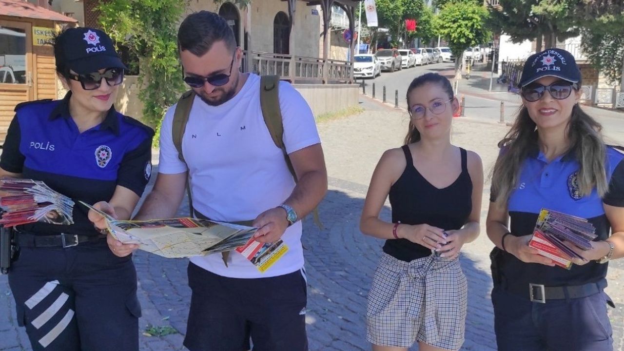Antalya'nın Alanya ilçesinde polis ekipleri, turistlerin daha güvenli ve huzurlu bir tatil geçirebilmeleri için 40 bin adet dört dilde bilgilendirme broşürü ve ilçede rehbere ihtiyaç duymadan gezebilmelerini ağlayacak haritalar dağıttı.