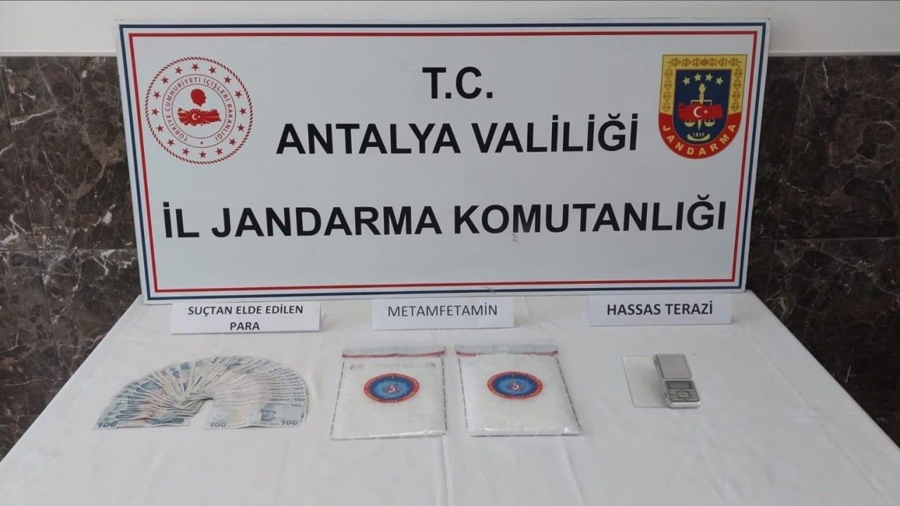 Antalya İl Jandarma Komutanlığı koordinesinde, Alanya Cumhuriyet Başsavcılığı talimatları doğrultusunda, Antalya İl Jandarma Komutanlığı Narkotik Şube Müdürlüğü ve Alanya İlçe Jandarma Komutanlığı ekiplerince müşterek operasyon gerçekleştirildi. Yapılan aramalarda 1. kilo 650 gram metamfetamin ile 1 adet hassas terazi ele geçirildi. Uyuşturucu maddeye ve diğer delillere el konulurken, olayla ilgili adli tahkikat başlatıldı.