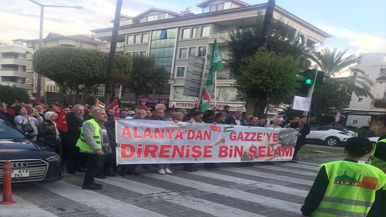 İsrail'e tepki amacıyla Alanya 'da bir araya gelen binlerce vatandaş tepkilerini yürüyüş yaparak gösterdi. İsrail' in 18 bin Filistinli vatandaşı katletmesi üzerine pankart açarak yürüyüş yapan vatandaşlar, "Alanya'dan Gazzeye direnişe bin selam" pankartı açarak Atatürk caddesinde yürüdüler, Yürüyüşe sokaktaki vatandaşlar da eşlik ederek destek verdiler.