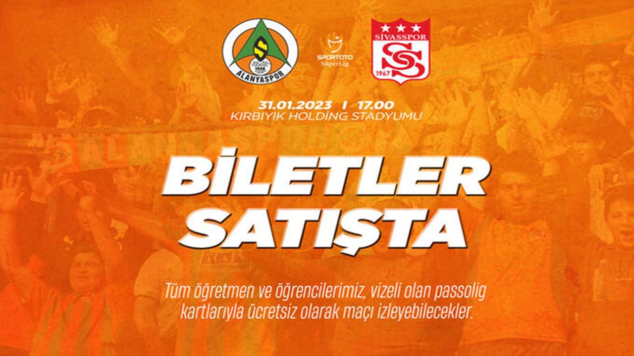 Bilet satışları Corendon Alanyaspor Kulübü Passolig Ofisi, www.passo.com.tr ile Passo mobil uygulaması üzerinden yapılacak. Maç günü bilet satın alacak taraftarlar için stadyum passolig ofis gişeleri açık olacak. 7 yaş ve üzeri için Passolig kartı ve e-bilet zorunlu olurken, 7 yaş altı çocuklar ise aileleriyle birlikte stadyumda maç izleyebilecek. Ayrıca öğretmen ve öğrenciler için vizesi olan Passolig kartlarına okul müdürlüklerinden gelen müracaat doğrultusunda kulüp tarafından ücretsiz olarak bilet tanımlanacaktır.