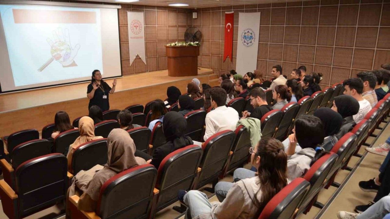 Enfeksiyon Kontrol Hemşiresi Aysel Duman tarafından gruplar halinde verilen uyum eğitiminde; hastane enfeksiyonları, sorun mikroorganizmalar, izolasyonlar, koruyucu ekipman kullanımı, atık yönetimi, kan yolu ile bulaşan hastalıklar, bağışıklama, aletlerin dekontaminasyon, dezenfeksiyon ve sterilizasyon prensipleri, hastane temizliği el hijyeni konuları anlatıldı. Eğitim, soru-cevap şeklinde geçti. Öğrencilere özellikle hastanelerde enfeksiyonun önemi ve dikkat edilmesi gereken hususlar vurgulandı.