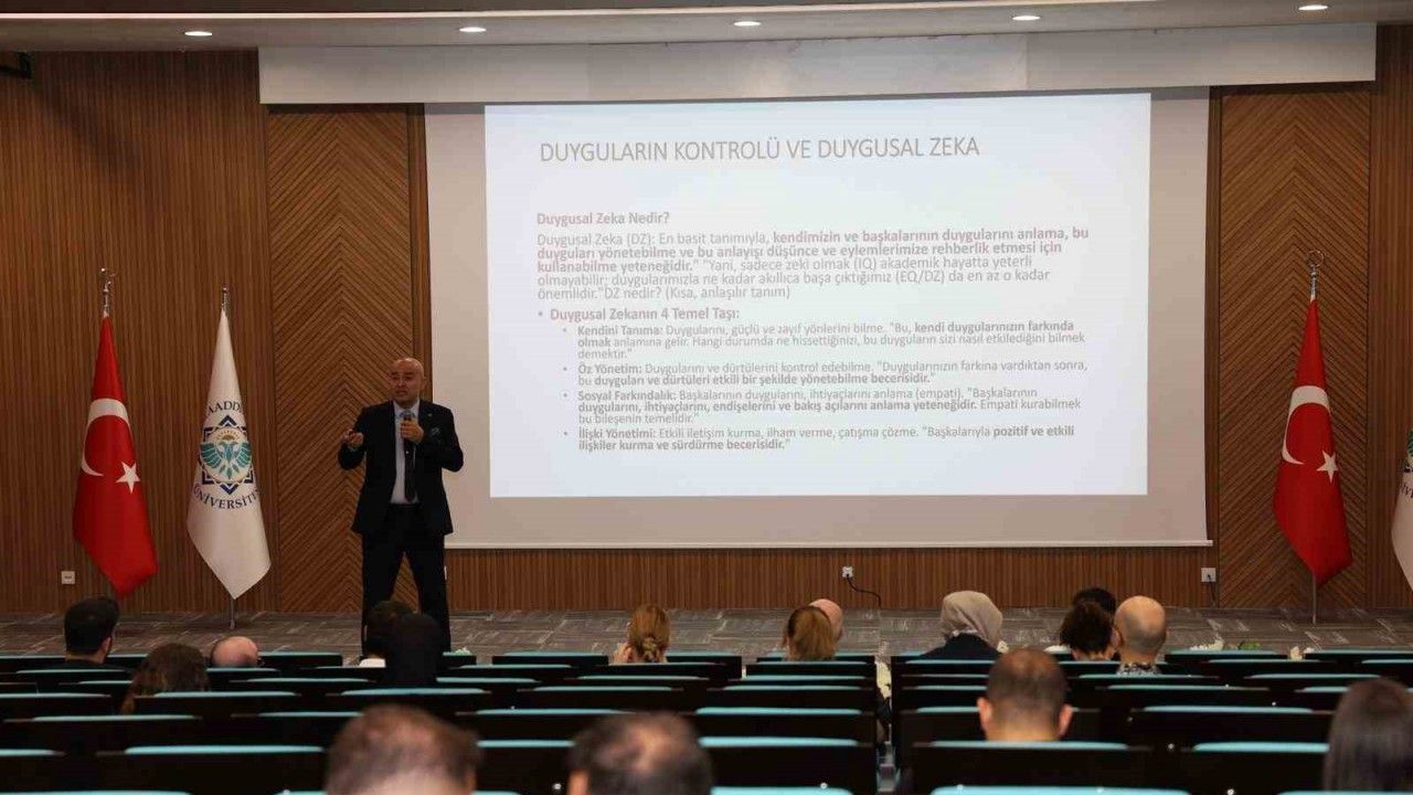 Alanya Alaaddin Keykubat Üniversitesinde (ALKÜ), Eğitim Fakültesi Dekanı Prof. Dr. Mustafa Uslu tarafından akademik personele yönelik verilen "Duyguların Yönetimi, Öfke ve Stresle Baş Edebilme" eğitimiyle farkındalık oluşturularak kişisel ve mesleki gelişime katkı sağlandı.