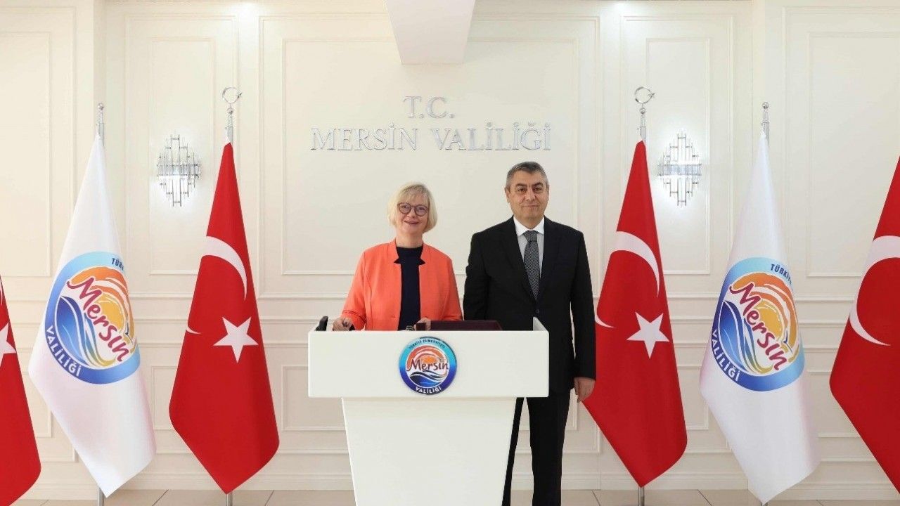 Mersin Valisi Atilla Toros, çeşitli temaslarda bulunmak üzere kente gelen Almanya Federal Cumhuriyeti Ankara Büyükelçisi Sibylle Katharina Sorg’u makamında kabul etti.