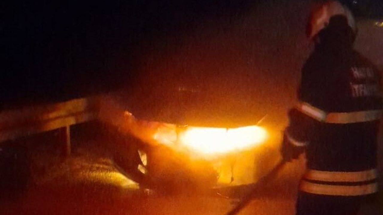 Hatay'da seyir halindeyken alevlere teslim olan otomobilde çıkan yangın söndürüldü.