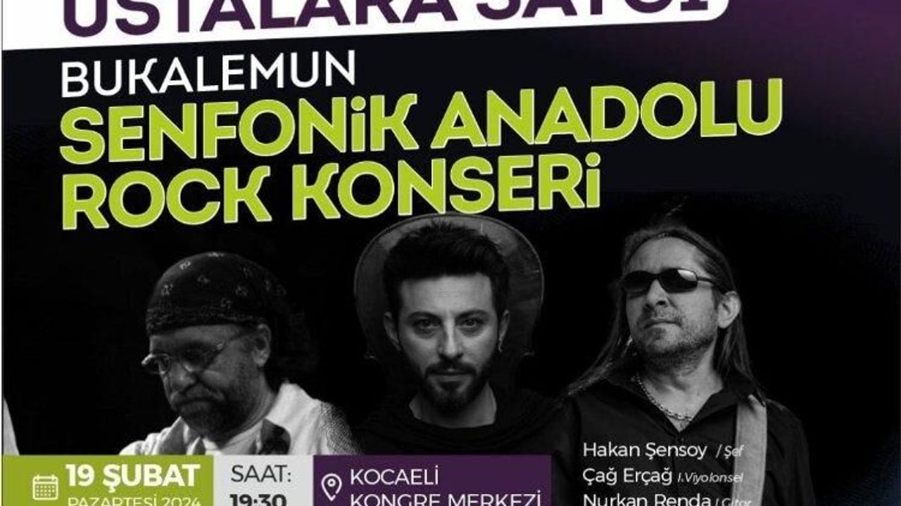 Bukalemun Senfonik Anadolu Rock grubu efsane isimlerin şarkılarını senfonik tınılarla buluşturacak. Çello ile elektrogitar “Namus Belasına Gardaş” diyecekKOCAELİ (İGFA) - Kocaeli Büyükşehir Belediyesi, Anadolu Rock’un efsane şarkılarını senfonik tınılarla bir araya getiren Bukalemun Senfonik Anadolu Rock Projesini Kocaelili müzik severlerle buluşturmaya hazırlanıyor. Ustalara Saygı Bukalemun Senfonik Anadolu Rock Konseri, 19 Şubat Pazartesi akşamı Kocaeli Kongre Merkezi’nde gerçekleştirilecek. Ücretsiz konser 19.30’da başlayacak. Konserde Anadolu Rock’un devleri Erkin Koray, Barış Manço ve Cem Karaca’nın yıllarca gönüllerde yer etmiş şarkıları senfonik ortamda müzik severlere sunulacak. Konserde, yakın zamanda kaybettiğimiz MFÖ grubundan Özkan Uğur’un yanı sıra yaşayan efsane Orhan Gencebay’ın eserleri de seslendirilecek.