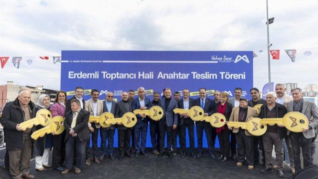Mersin Büyükşehir Belediye Başkanı Vahap Seçer, Erdemli Toptancı Hal Kompleksi Anahtar Teslim Töreni’ne katılarak, komisyonculara işyerlerinin anahtarlarını teslim etti.MERSİN (İGFA) - Erdemlili üretici, komisyoncu ve vatandaşların yoğun ilgi gösterdiği törene Başkan Seçer’in yanı sıra; Cumhuriyet Halk Partisi (CHP) Mersin İl Başkanı Koral Ömür, CHP Mersin Milletvekili Talat Dinçer ve Hasan Ufuk Çakır, CHP Erdemli İlçe Başkanı Ahmet Dursen Şahin, CHP Mezitli Belediye Başkan Adayı Ahmet Serkan Tuncer, CHP Erdemli Belediye Başkan Adayı Mehmet Mavi, AK Parti, MHP ve İYİ Parti’ye mensup belediye meclis üyeleri ve temsilcileri, muhtarlar ve Büyükşehir Belediyesi ile Mersin Su ve Kanalizasyon İdaresi’nin (MESKİ) bürokratları katıldı.