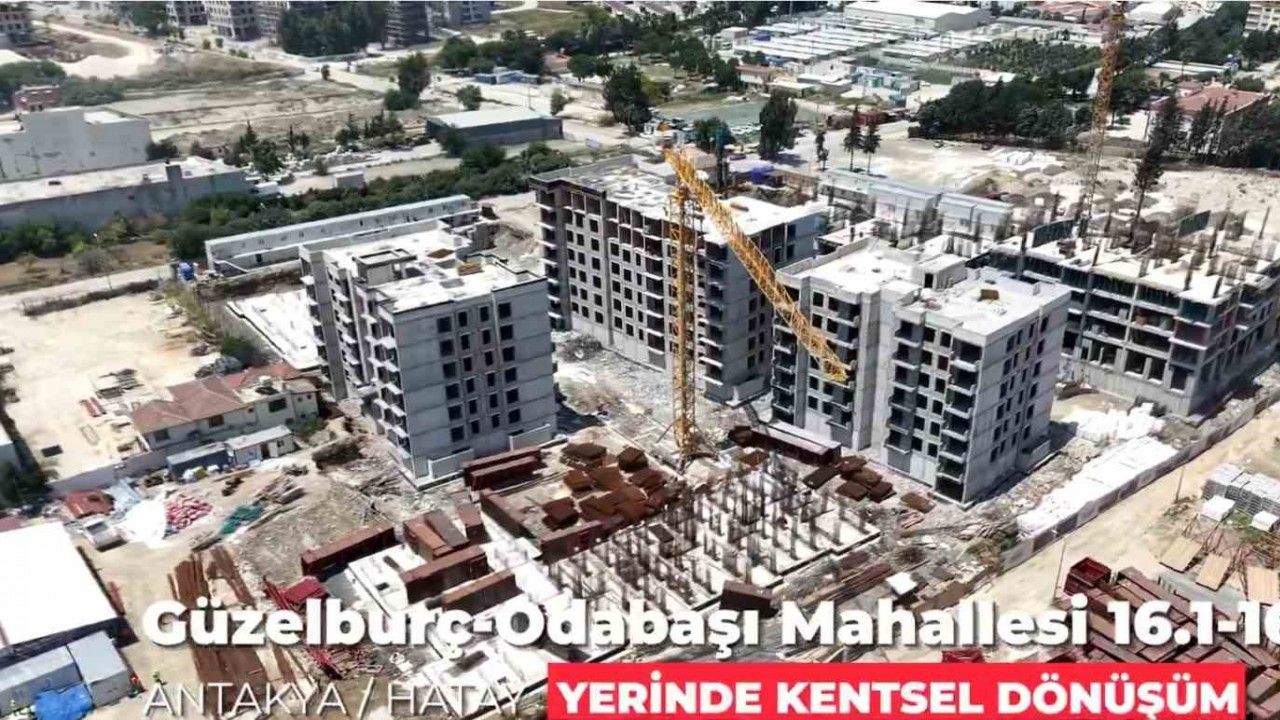 Depremin yıktığı Hatay’ın Antakya ilçesinde yerinde kentsel dönüşüm projeleriyle binalar yükselmeye devam ediyor.