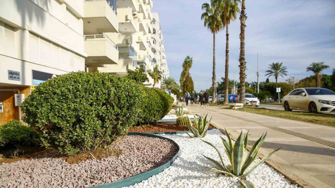 Antalya Büyükşehir Belediyesi, şehri güzelleştirmek adına yaptığı çalışmalara devam ediyor. Bu çerçevede Antalya Büyükşehir Belediyesi Park ve Bahçeler Şube Müdürlüğü ekipleri tarafından, şehrin işlek caddelerinden, Konyaaltı Caddesi’nde kurakçıl peyzaj çalışması yapıldı.