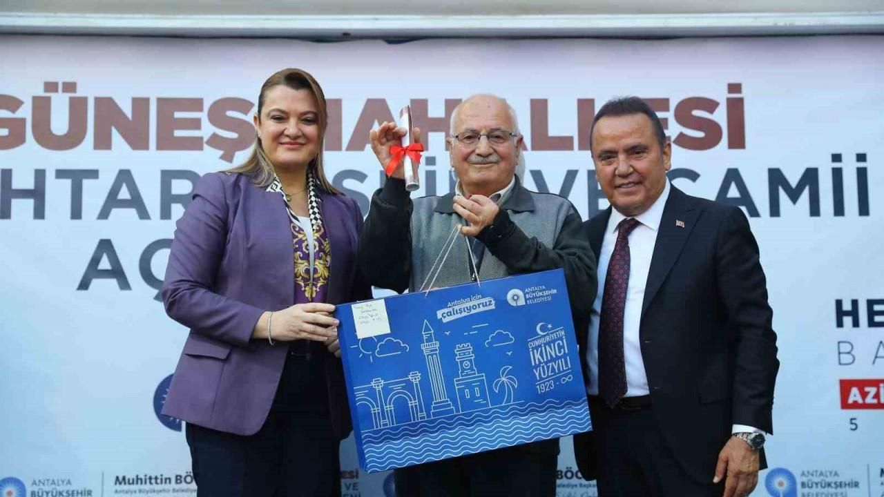 Konuşmaların ardından Başkan Böcek ve Grup Başkanvekili Ali Mahir Başarır, temsili olarak 19 hak sahibine dairelerinin anahtarlarını teslim etti. Törende, proje kapsamında inşa edilen Güneş Mahallesi Camii de dualar eşliğinde ibadete açıldı. Törenin ardından, Büyükşehir Belediye Başkanı Muhittin Böcek ve CHP Grup Başkanvekili Ali Mahir Başarır, Güneş Mahallesi sakinleri ile birlikte iftar açtı.