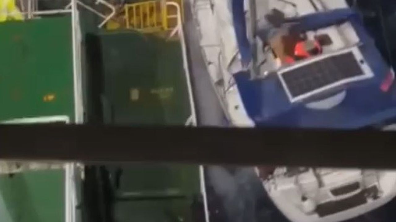 Antalya’da fırtınada yelkeni yırtılan lüks teknede mahsur kalan 2 kişinin, yardıma giden tanker personelleri tarafından kurtarılma anı cep telefonu görüntülerine yansıdı.