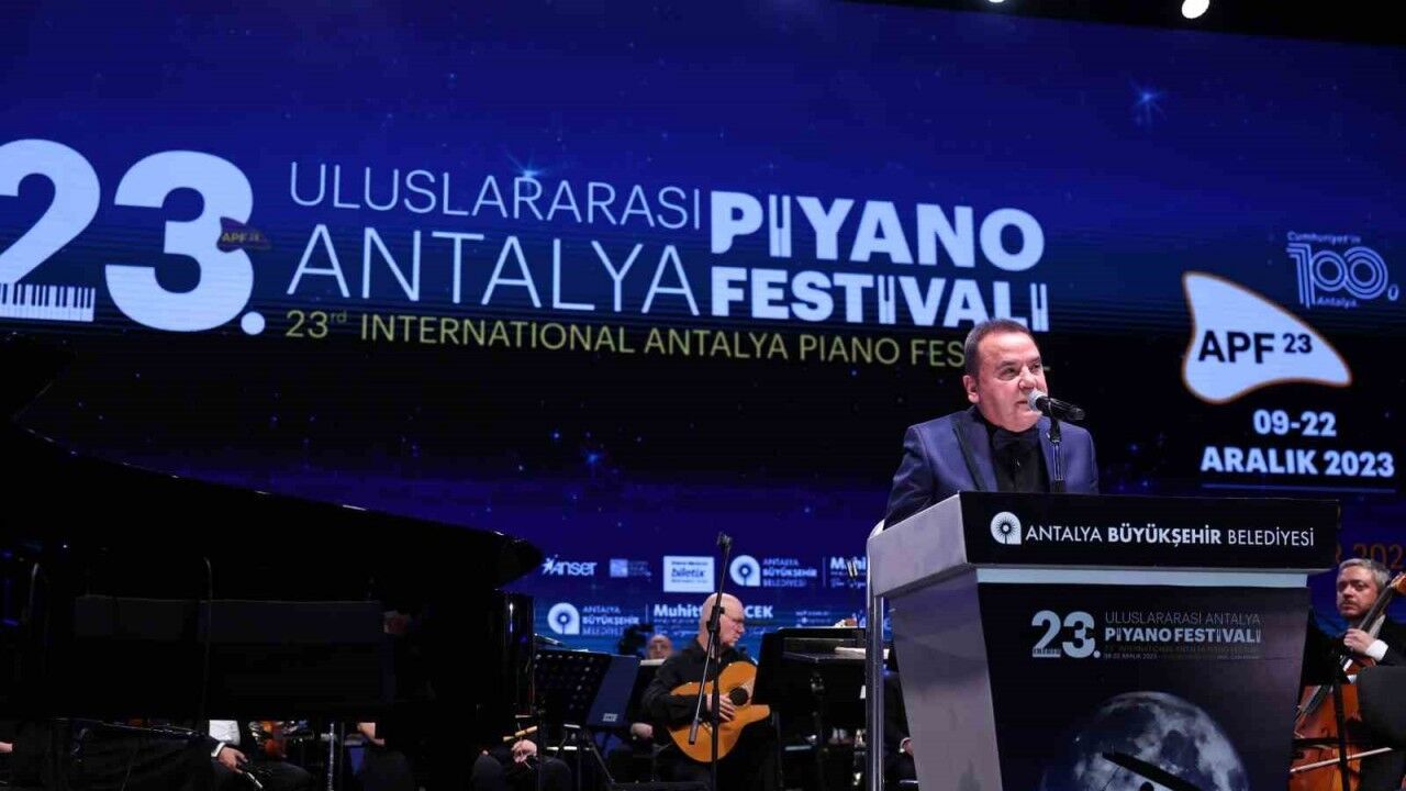 Antalya Büyükşehir Belediyesi’nin en önemli kültür sanat organizasyonlarından biri olan 23. Uluslararası Antalya Piyano Festivali, Selda Bağcan ile Fahir Atakoğlu’nun Antalya Devlet Senfoni Orkestrası eşliğindeki muhteşem konseriyle başladı. Antalya Büyükşehir Belediye Başkanı Muhittin Böcek, “Uluslararası alandaki önemli festivallerimizden biri olan Antalya Piyano Festivalimiz ile müziğin birleştirici ve iyileştirici gücü şehrimizi saracak” dedi.