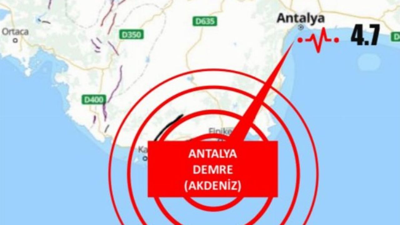 Antalya Demre'de 4,7 büyüklüğünde deprem meydana geldi.ANKARA (İGFA) - AFAD'dan alınan bilgiye göre Antalya, Demre’de saat 16,55'te 4,7 büyüklüğünde deprem meydana geldi.