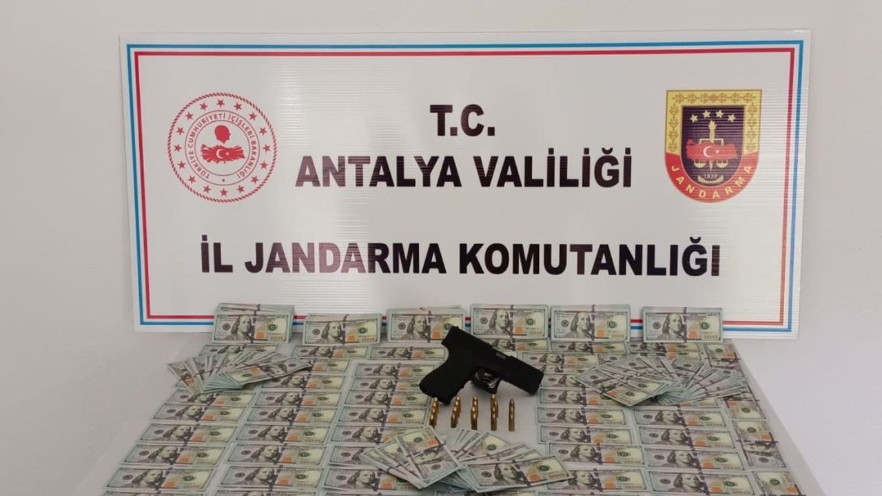 Şüpheli şahısların kullandığı araç Akseki ilçesinde durdurularak şüpheli şahısların üzerinde ve araçta yapılan arama neticesinde; 85 bin sahte dolar, 1 adet seri numarasız tabanca, 1 adet tabanca şarjörü ve 13 adet 9 minimetre çapında fişek ele geçirildi.