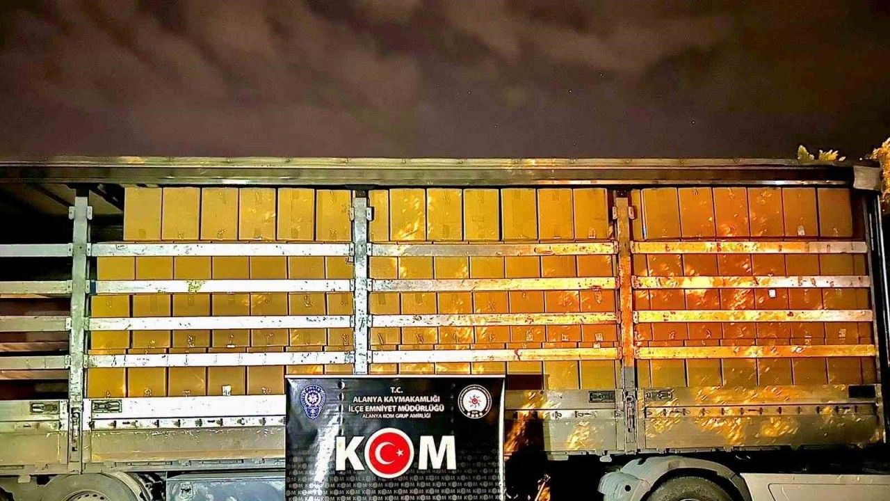 Kaçakçılık ve Organize Suçlarla Mücadele Şube Müdürlüğü Alanya KOM Büro Amirliği ekipleri tarafından Alanya ilçesinde bir tırda arama yapıldı. Aramada tır dorsesinde 4 tona yakın kaçak tütün ele geçirildi. Olayla ilgili 2 şüpheli hakkında “5607 Sayılı Kanun’a Muhalefet Etmek” suçundan işlem yapılarak adli makamlara sevk edildi.