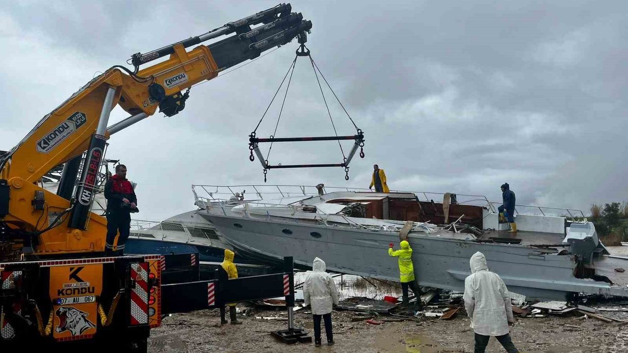 Felaketin ardından bugün alana vinç ve kepçe ekipleri sevk edildi. Aksu Belediyesi'nin düzenleme yaptığı alana, onarımı mümkün olan tekneler taşınmaya başlandı. Ekipler ve tekne sahipleri, uzun süre teknelerin römorklardan ayrılması için yoğun çaba gösterdi. Römorklardan ayrılan tekneler, vinç ve kepçe yardımıyla güvenli alana alınarak onarım sürecine hazırlandı.