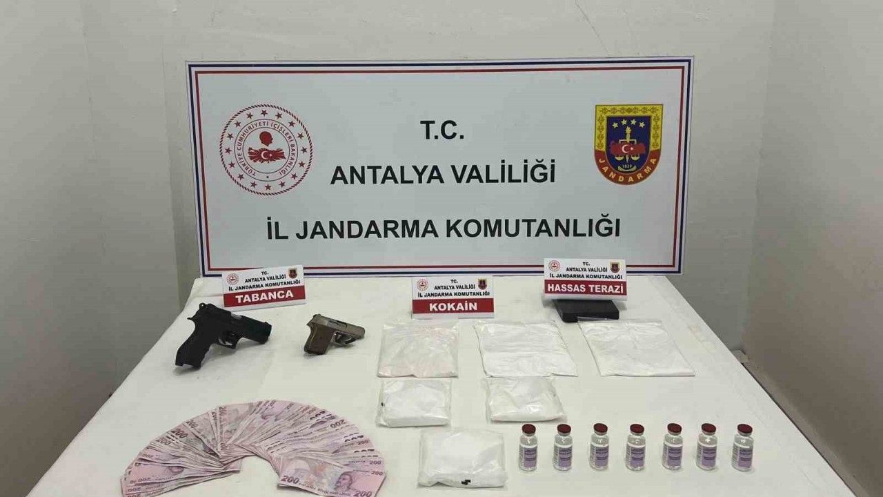 Antalya’nın Kepez ilçesinde jandarma ekipleri tarafından 3 şüpheli şahsın evlerinde yapılan aramada 1 kilo 850 gram kokain ve 2 tabanca ele geçirildi.